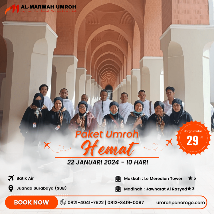 Nama Trip: Umroh Hemat Durasi Perjalanan: 10 Hari Keberangkatan: 22 Januari 2024 Tipe: Paket Umroh Murah Maskapai: Batik Air/Setaraf Hotel: Bintang 3/Setaraf Harga Jual Paket :Rp 29.000.000 (Sekamar Berempat) Paket Sudah […]